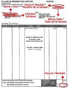 Paiement des factures d'eau et d'égout - Fredericton Junction